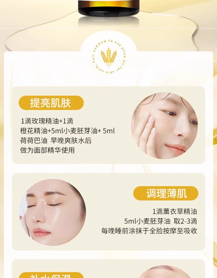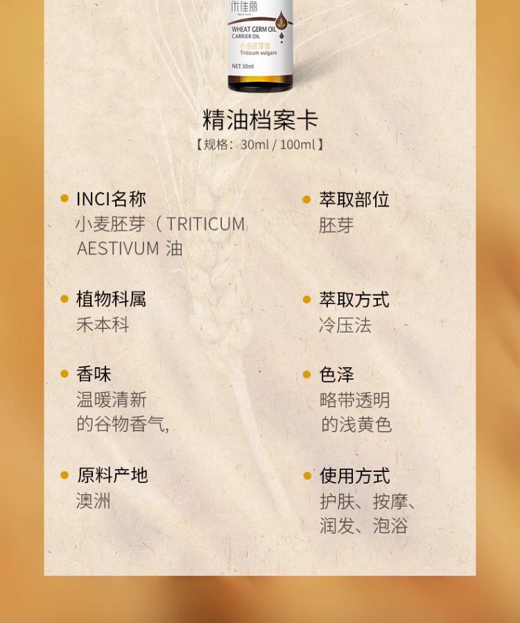 优佳丽小麦胚芽油基础油补水保湿精油滋润皮肤孕妇可用
